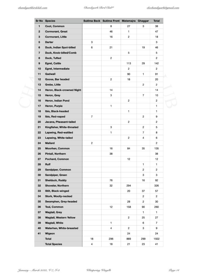 Newsletter of the Chandigarh Bird Club Volume 7 Issue 3 January to March 2022 14