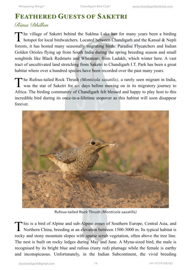 Newsletter of the Chandigarh Bird Club Volume 10 Issue 1 July to September 2025 – 16