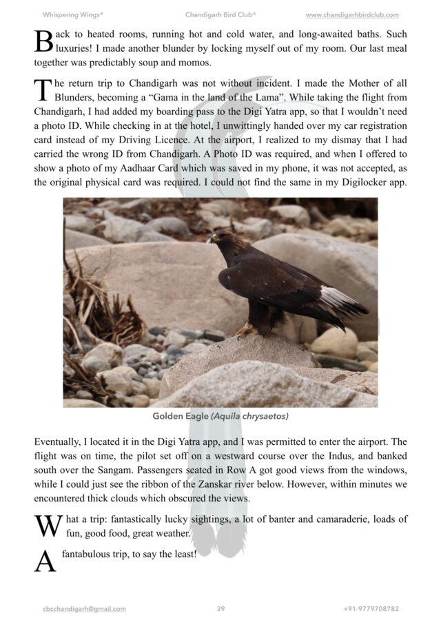 Newsletter of the Chandigarh Bird Club Volume 10 Issue 1 July to September 2025 – 41